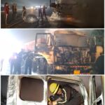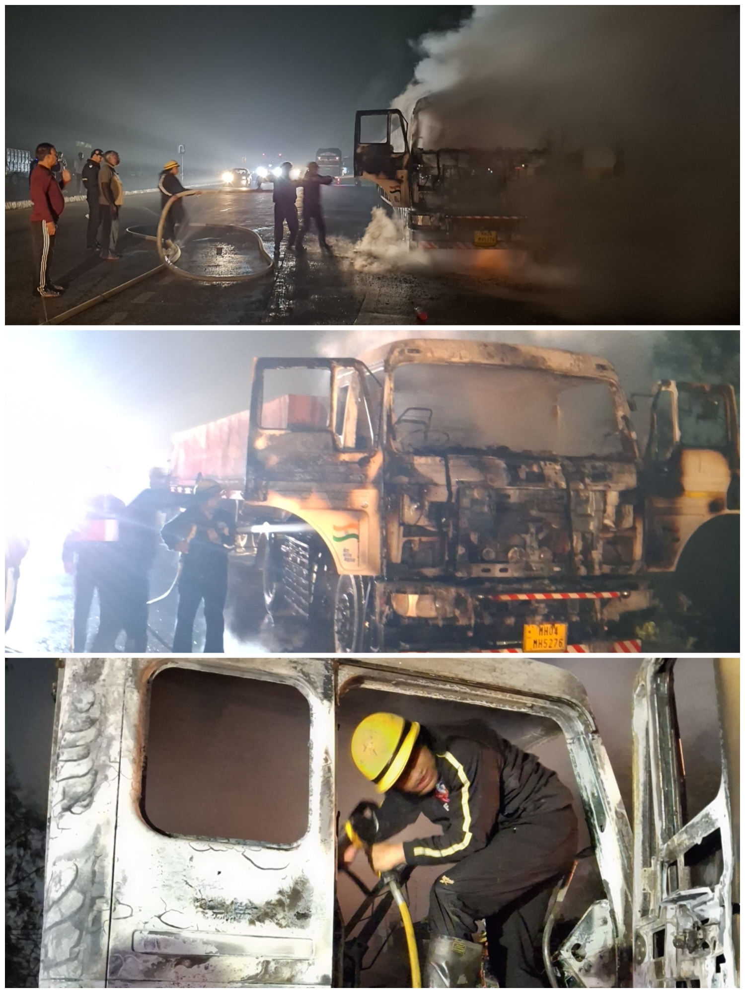 माल से लोडेड ट्रक में लगी आग, सूचना पर तत्काल घटनास्थल पहुंची फायर यूनिट