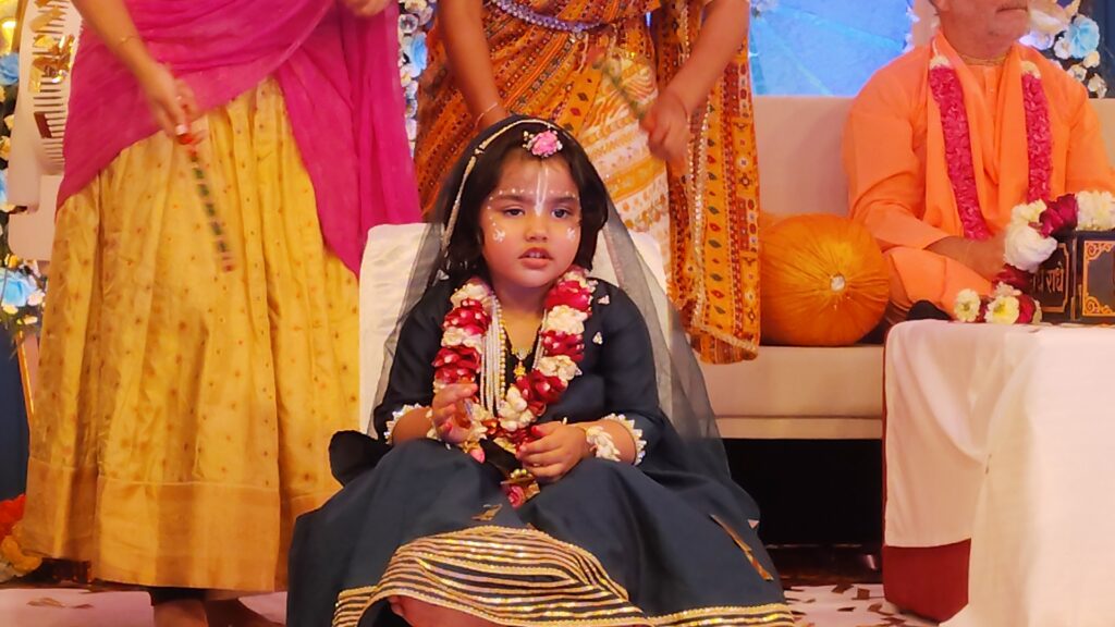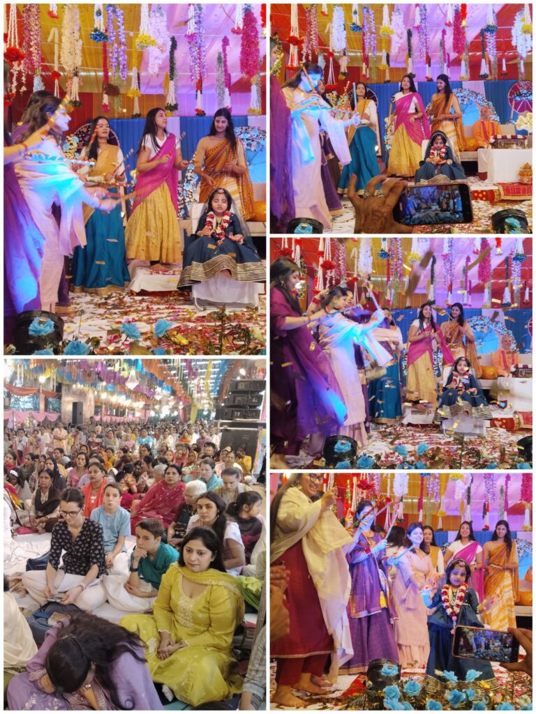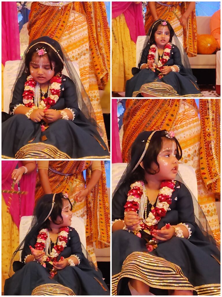 कार्यक्रम का विशेष आकर्षण राधा जी के बाल स्वरूप की मनोहारी प्रस्तुति रही। बाल राधा की लीलाओं का सजीव चित्रण और भावपूर्ण अभिनय देखकर श्रद्धालु भाव-विभोर हो गए। छोटी-सी बालिका द्वारा प्रस्तुत राधा का रूप इतना आकर्षक था कि पूरा पंडाल “राधे-राधे” के जयकारों से गूंज उठा