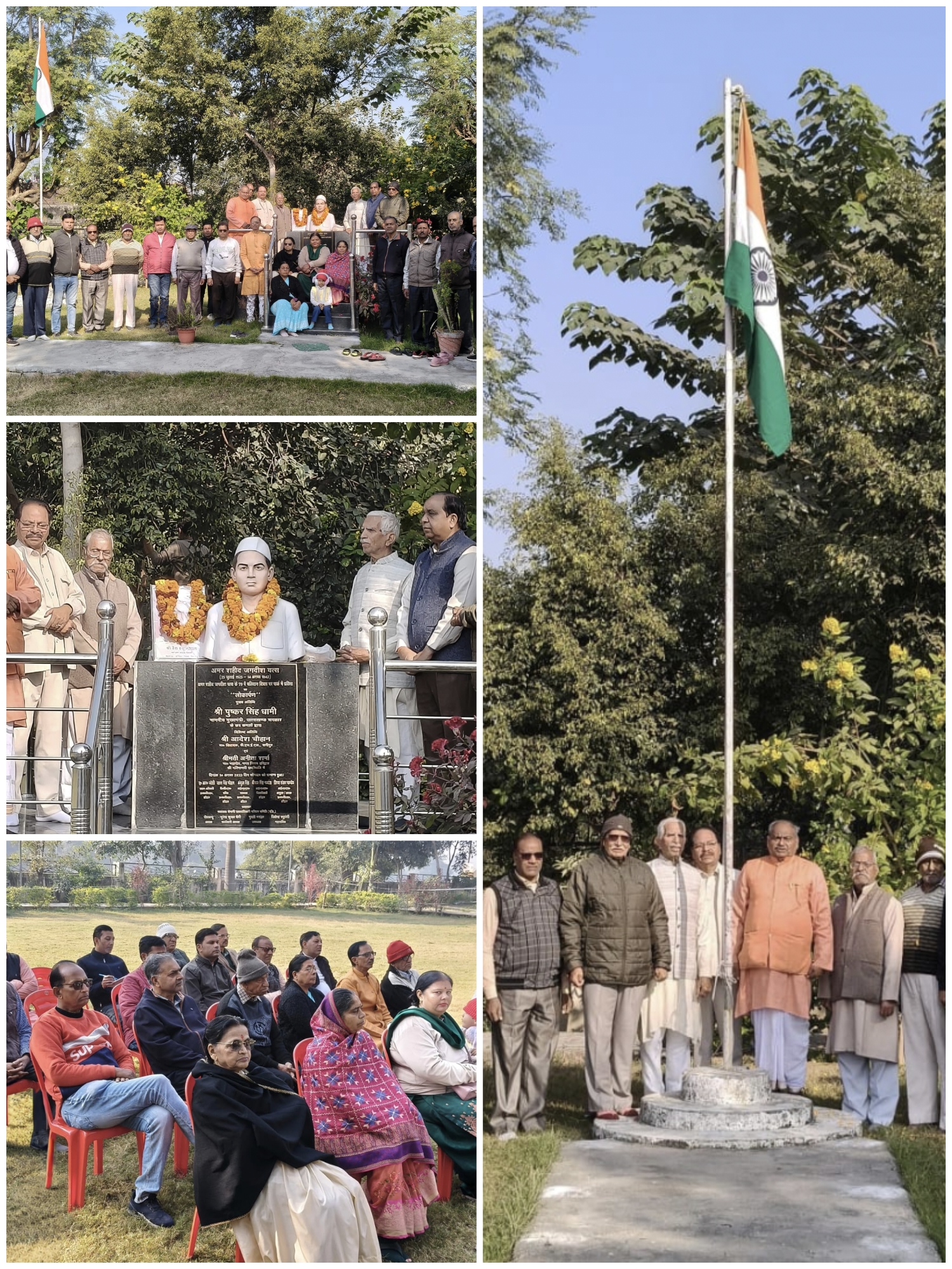 हरिद्वार 7 दिसम्बर। स्वतंत्रता सेनानी उत्तराधिकारी परिवार समिति द्वारा संचालित *हर महीने प्रथम रविवार दस बजे दस मिनट स्वतंत्रता संग्राम सेनानियों शहीदों के नाम* अभियान के अन्तर्गत देश के विभिन्न प्रान्तों में आज 36 वें रविवार में ध्वजवंदन, राष्ट्रगान, राष्ट्रगीत का गायन, स्मारकों, शहीद स्थलों, स्वतंत्रता संग्राम सेनानियों, शहीदों की प्रतिमाओं पर पुष्पांजलि समर्पित करने के साथ ही आजादी के दीवानों की जीवन गाथाएँ सुनाई गईं। इसी क्रम में अमर शहीद जगदीश वत्स पार्क निकट जटवाड़ा पुल ज्वालापुर हरिद्वार में भी प्रतिमाह की भांति कार्यक्रम आयोजित किए गए। सर्व प्रथम स्वतंत्रता संग्राम सेनानी भारत भूषण विद्यालंकार ने ध्वजारोहण किया, शहीद जगदीश वत्स की प्रतिमा पर स्वतंत्रता संग्राम सेनानी के साथ ही जितेन्द्र रघुवंशी, जगदीश लाल पाहवा तथा वीरेन्द्र गहलौत द्वारा माल्यार्पण किया गया एवं सभी उपस्थित स्वतंत्रता सेनानी शहीद परिवारों, गणमान्य नागरिकों द्वारा पुष्पांजलियां समर्पित की गईं।