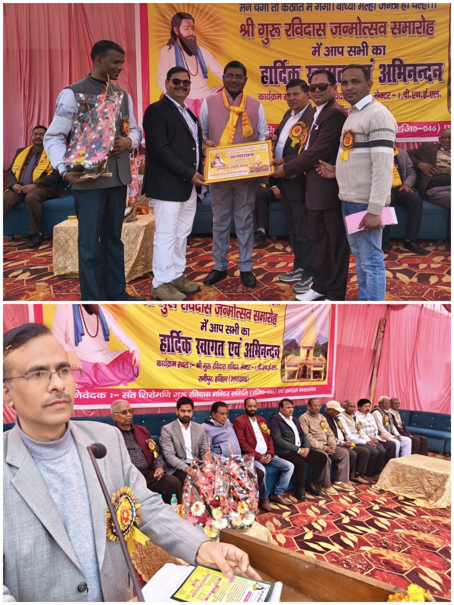 हरिद्वार | संत शिरोमणि श्री गुरू रविदास मंदिर समिति (रजिस्टर्ड 046) ,सेक्टर 1, भेल , रानीपुर , हरिद्वार में श्री गुरु रविदास जयंती के शुभ अवसर पर अदभुत कलाकृति द्वारा विशेषज्ञों की देख रेख में 2वर्ष 3 माह के लम्बे समयावधि में निर्मित 33 फीट ऊंचाई एवं 35 फीट चौड़ाई वाली भव्य मुख्य प्रवेश द्वार का लोकार्पण परम संत श्री जगबीर जी महाराज के शिष्ट मंडल एवं हरिद्वार गैस एजेंसी के अधिष्ठाता प्रियंक कुमार के कर कमलों के द्वारा सम्मानित अतिथियों की उपस्थिति में किया गया।