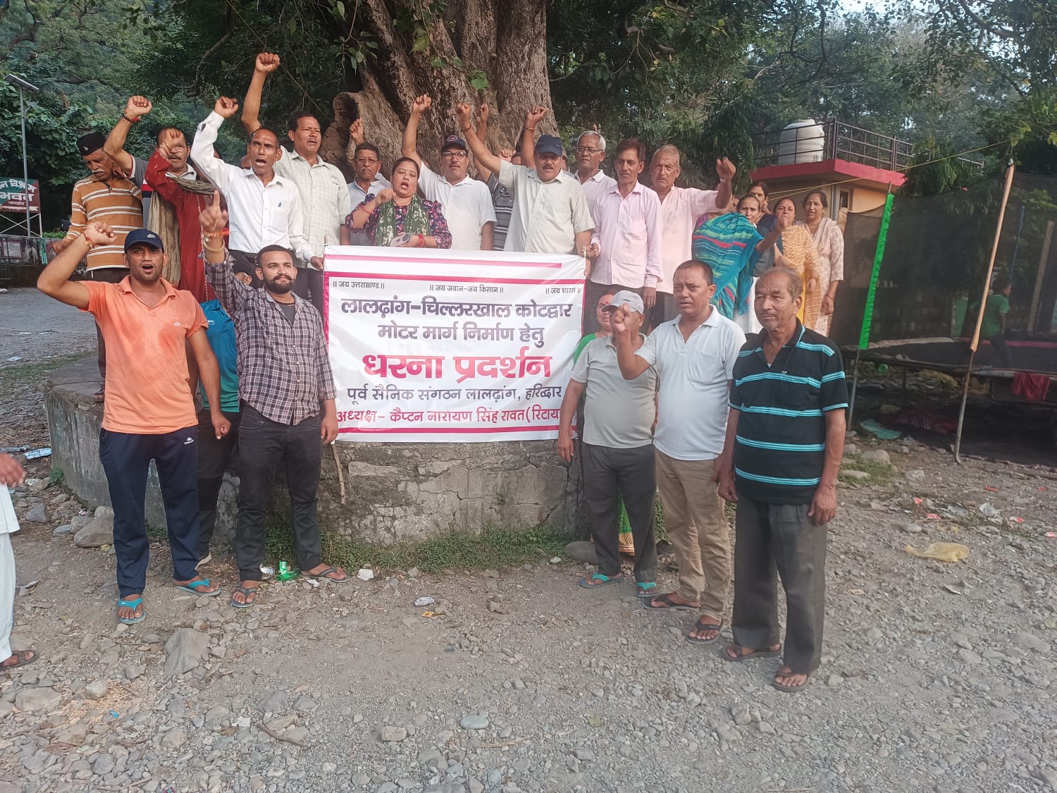 लालढांग चिल्लर खाल सिगड़ी कोटद्वार मोटरमार्ग निर्माण को लेकर कंडी रोड़ संघर्ष समिति ने पूर्व सैनिक संगठन के बैनर तले आक्रोश रैली का आयोजन किया पूर्व सैनिक संगठन के अध्यक्ष कैप्टन नारायण सिंह रावत ने रैली का नेतृत्व किया पूर्व सैनिक किसान महिलाएं छात्र मीठी बेरी तिराहे पर एकत्र हुए वहां से स रूप में नारीबाजी करते हुए लालढांग गांधी चौक पर पहुंचे