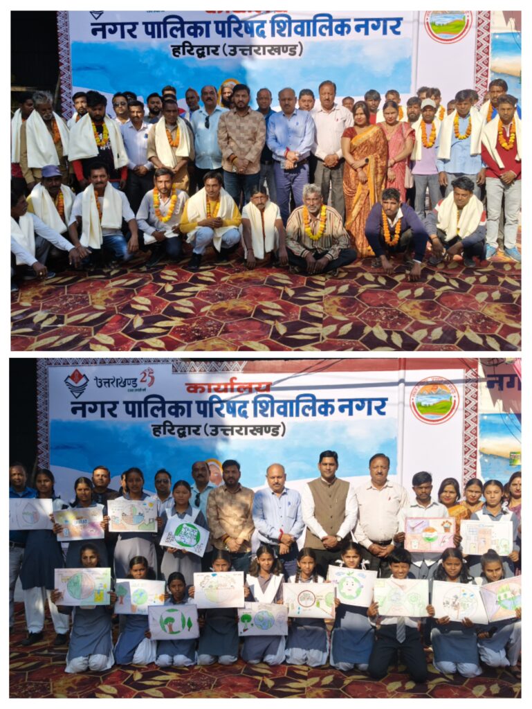 उत्तराखंड राज्य स्थापना दिवस (रजत जयंती वर्ष) के अवसर पर आयोजित कार्यक्रमों की श्रृंखला के अंतर्गत नगर पालिका शिवालिक नगर द्वारा नगर पालिका कार्यालय परिसर में चित्रकला एवं निबंध प्रतियोगिता के विजेताओं तथा पर्यावरण मित्रों (स्वच्छता कर्मियों) को सम्मानित किया गया।