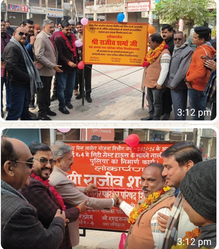 शिवालिक नगर वार्ड संख्या 4 के शॉपिंग कॉम्प्लेक्स क्षेत्र में गड्ढे वाले स्थान पर टाइल्स लगाकर समतलीकरण करने,नाली एवं पुलिया निर्माण कार्य का लोकार्पण नगर पालिका अध्यक्ष राजीव शर्मा द्वारा विधिवत रूप से किया गया तथा इस कार्य को क्षेत्रवासियों को समर्पित किया ।