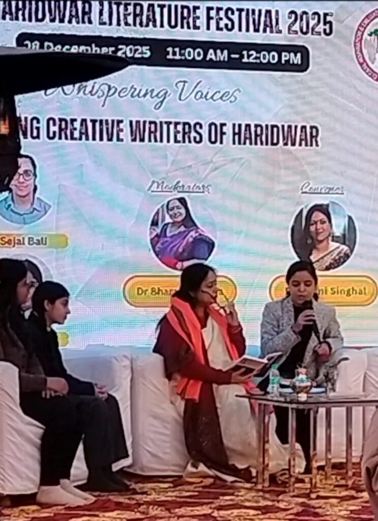 गद्य लेखन पर श्वेता कौशल ने पारिवारिक सहयोग की भूमिका रेखांकित की। वहीं अनन्या गोयल ने अपनी पुस्तक द आनन्दा आईसलैंड पर चर्चा करते हुए रहस्यमयी, साइंस फिक्शन और पर्यावरणीय विषयों में रुचि बताई। काव्य सहगल, सावी सिंह और रेवा भट्ट ने भी अनुभव साझा किए। सत्र का संयुक्त संचालन डॉ. भारती शर्मा और डॉ. आशिमा श्रवण ने किया, जबकि सूत्रधार की भूमिका डॉ. हरिओम रावत और डॉ. रजनी सिंहल ने निभाई महत्वपूर्ण भूमिका l इस अवसर पर डॉ राजीव कुरेले एवं प्रफुल्ल ध्यानी भी उपस्थित रहे l