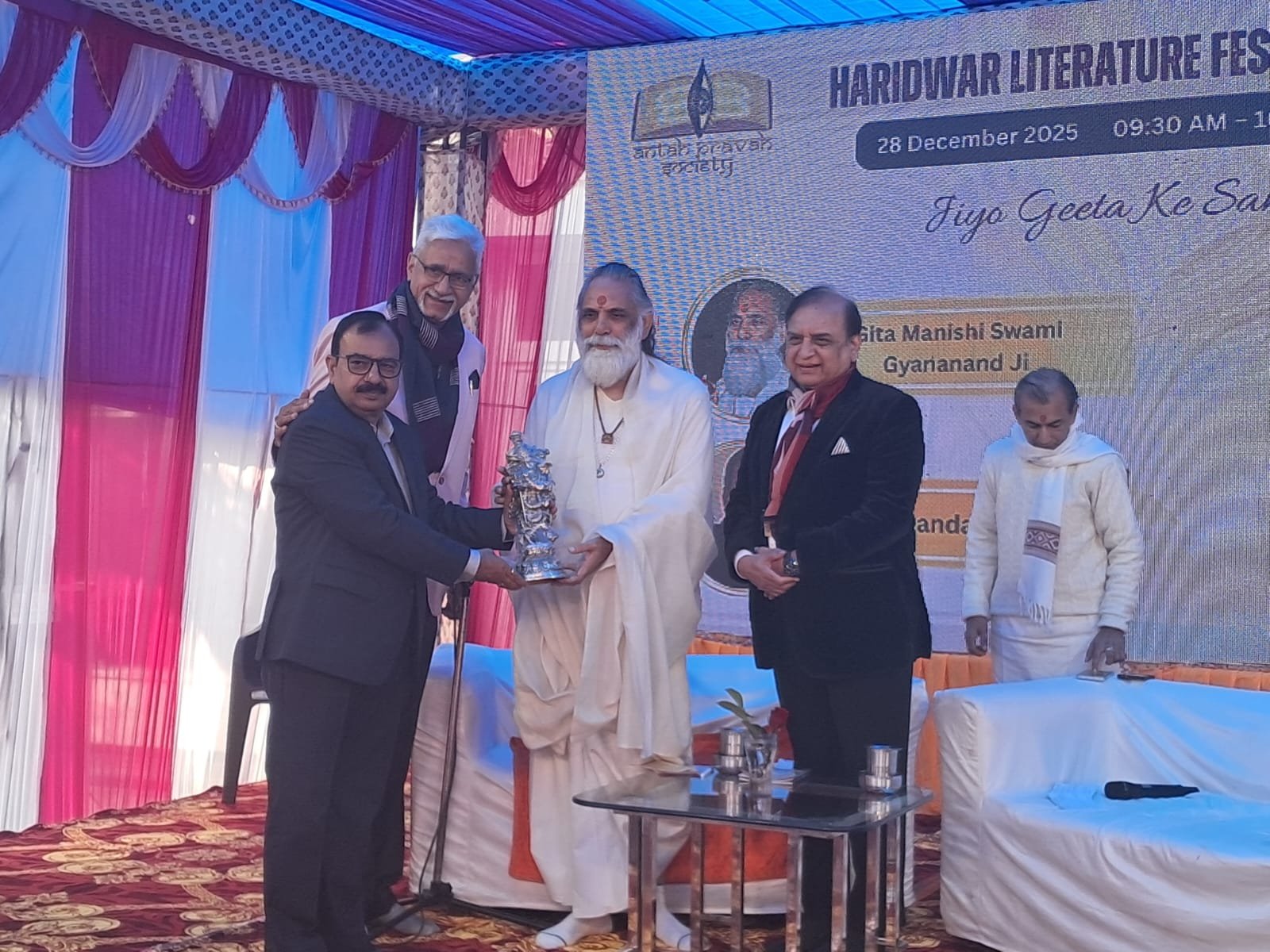 हरिद्वार लिटरेचर फेस्टिवल के तीसरे दिन जिओ गीता के तत्वावधान में स्वामी ज्ञानानंद महाराज का गीता पर आधारित विशेष संवाद सत्र आयोजित किया गया। स्कूली बच्चों के लिए आयोजित इस सत्र में उन्होंने बताया कि गीता का मूल संदेश कर्तव्यबोध जागृत करना है, जो साधारण व्यक्ति को श्रेष्ठ बनाता है।