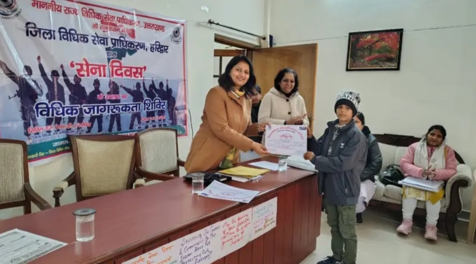 हरिद्वार। सेना दिवस” के उपलक्ष्य में जिला विधिक सेवा प्राधिकरण, हरिद्वर के सभागार भवन में एक विशेष कार्यक्रम आयोजित किया गया। कार्यक्रम का आगाज नालसा थीम सांग एक मुठ्ठी आसमान से किया गया तथा जिला विधिक सेवा प्राधिकरण द्वारा संचालित विभिन्न योजनाओं के बारे में जानकारी संचालक श्रीमती संगीता भारद्वाज रिटेनर अधिवक्ता द्वारा दी गयी। कार्यक्रम में पूर्व सैनिकों सहित उनके परिवार जन उपस्थित हुए। इस कार्यक्रम में पूर्व सैनिकों को राष्ट्रीय विधिक सेवा प्राधिकरण (द्वारा संचालित योजना ‘वीर परिवार सहायता योजना, 2025″ के बारे में विस्तृत जानकारी सचिव श्रीमती सिमरनजीत कौर द्वारा दी गई। कार्यक्रम की अध्यक्षता जनपद न्यायाधीश अध्यक्ष जिला विधिक सेवा प्रधिकरण द्वारा की गई, जिसमें उन्होंने समस्त पूर्व सैनिकों को संबोधिक करते हुए कहा कि “हमारी स्वतंत्रता इसलिए सुरक्षित है क्योंकि हमारी भारतीय सेना का साहस अदम्य है।” हम अपने घरों में इसलिए चैन से सो पाते हैं क्योंकि सरहद पर हमारे सैनिक हमारी सुरक्षा हेतु समर्पित हैं। आज उन सभी सैनिकों को याद करने का नमन करने का दिवस है। जिला विधिक सेवा प्राधिकरण हरिद्वार सभी सैनिकों के लिए विधिक सहायता हेतु सदैव तत्पर है। कार्यक्रम में पूर्व सैनिकों द्वारा अपनी समस्याऐं बताई गयी एवं उनकी समस्याओं को सुना गया तथा साथ ही पूर्व सैनिकों के परिवारजनों से आये बच्चों द्वारा सांस्कृतिक प्रस्तुति दी गयी जिसके उपरान्त जिला विधिक सेवा प्राधिकरण हरिद्वार के अध्यक्ष जनपद न्यायाधीश नरेद्र दत्त, मुख्य